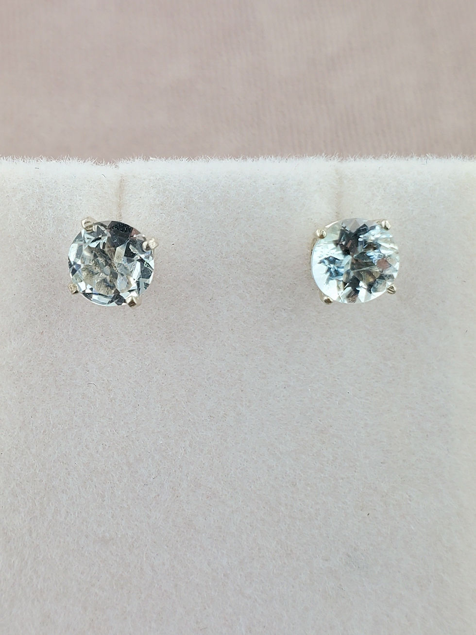 Aquamarine 7mm Round Earrings in Silver Post Settings